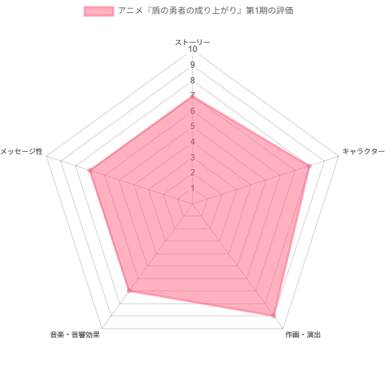 アニメ『盾の勇者の成り上がり』第1期の評価について以下の5つの観点から各10点満点で採点致します。