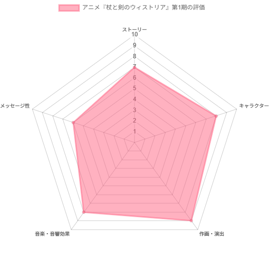 アニメ『杖と剣のウィストリア』第1期の評価について以下の5つの観点から各10点満点で採点致します。