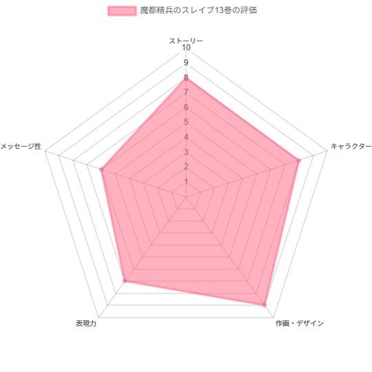 魔都精兵のスレイブ13巻について、以下の5つの観点で各項目10点満点で評価致します。