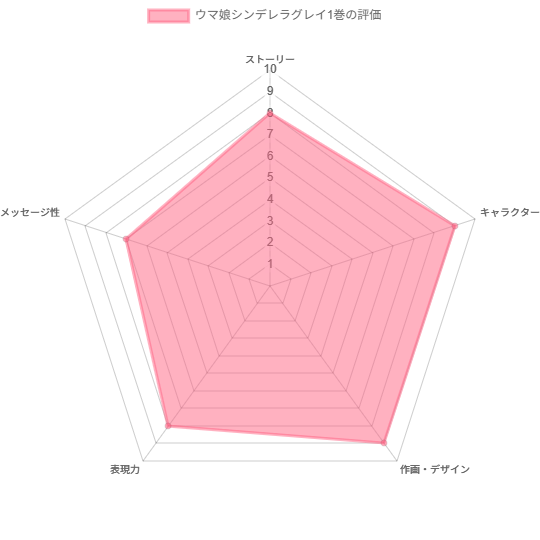 ウマ娘シンデレラグレイ1巻について、以下の5つの観点で各項目10点満点で評価致します。