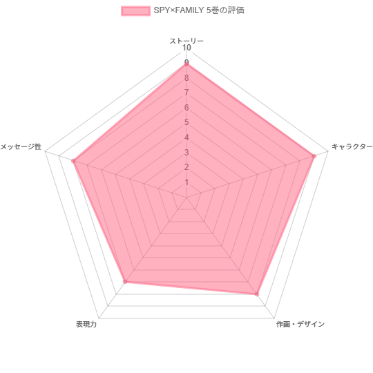 SPY×FAMILY 5巻について、以下の5つの観点で各項目10点満点で評価致します。