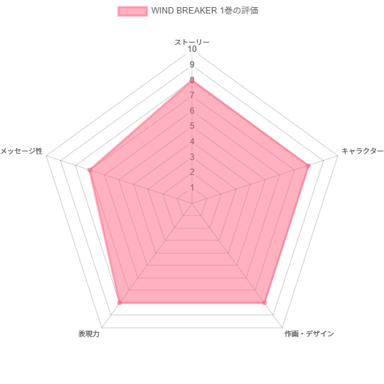 WIND BREAKER 1巻について、以下の5つの観点で各項目10点満点で評価致します。
