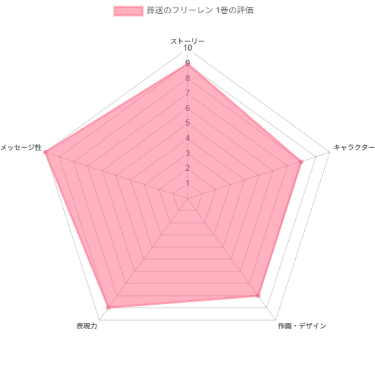葬送のフリーレン1巻について、以下の5つの観点で各項目10点満点で評価致します。