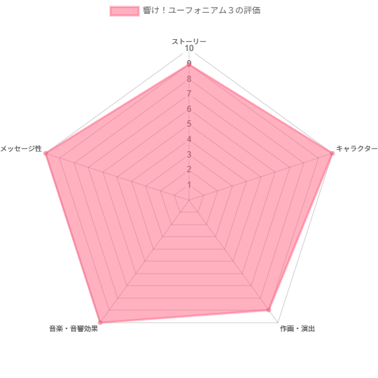 響け!ユーフォニアム3について以下の5つの観点から各10点満点で評価致しました。