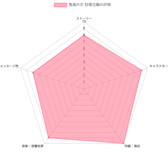 鬼滅の刃 柱稽古編について以下の5つの観点から各10点満点で評価致しました。