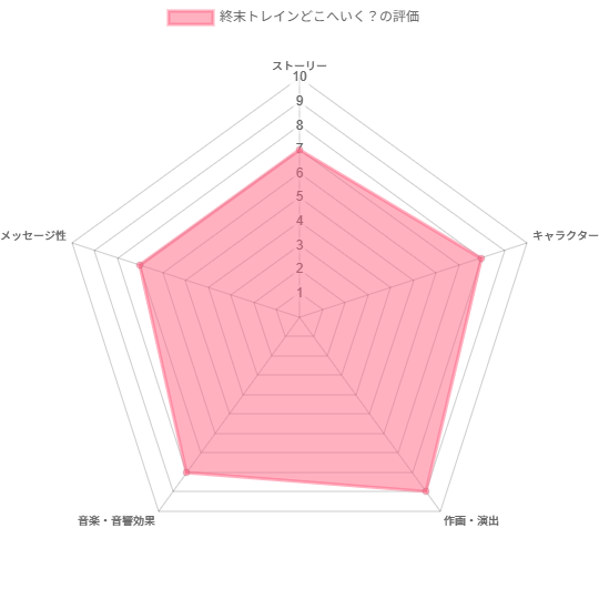 終末トレインどこへいく?について以下の5つの観点から各10点満点で評価致しました。